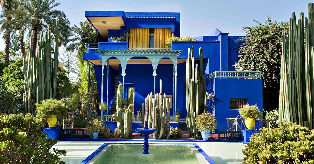 El Jardín Majorelle, un oasis de 4,9 hectáreas en medio de la Marrakech contemporánea, ha dado al mundo su propio color vibrante y distintivo: el azul Majorelle. Es este intenso cobalto el que acentúa los edificios, las fuentes y los bordes del jardín. Su creador francés, Jacques Majorelle, era ilustrador y artista, pero este elegante refugio que creó en el desierto es su verdadera obra maestra. Meticulosamente restaurado por sus posteriores propietarios, el diseñador francés Yves Saint Laurent y Pierre Bergé, honra las tradiciones moriscas en un intrigante entorno tropical.