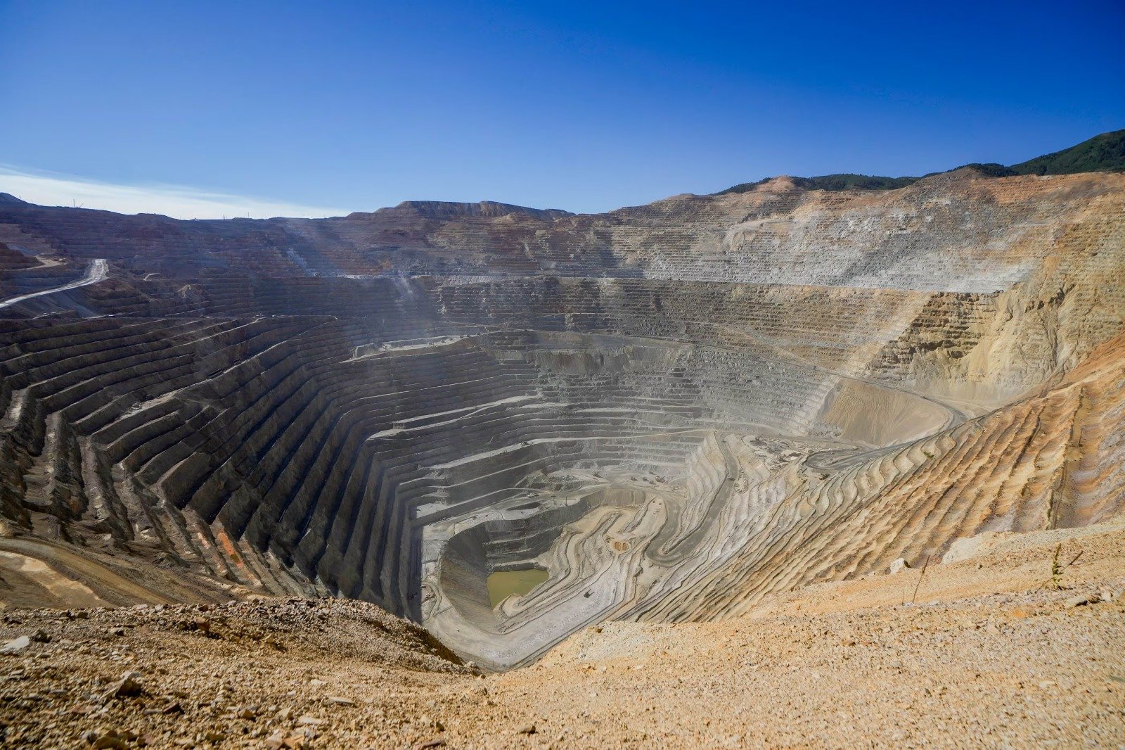 La mina de Chuquicamata es una de las mayores minas de cobre a cielo abierto del mundo por volumen y la segunda mina a cielo abierto más profunda del mundo, con 850 metros. El yacimiento está situado en el norte de Chile. La mina lleva en funcionamiento desde 1910 y actualmente es propiedad de Codelco, una empresa estatal desde la nacionalización chilena de la minería del cobre.