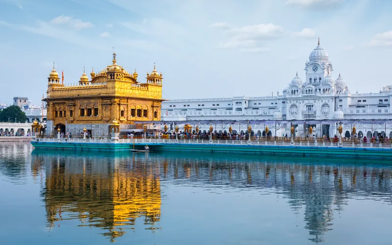 El Templo Dorado, el más sagrado de los santuarios sijs, es un lugar mágico. El templo, que parece flotar sobre un brillante estanque que lleva el nombre del «néctar de la inmortalidad», es una estructura preciosa. Esta adquiere aún más valor por su intenso color dorado (la cúpula en forma de loto es de oro). Incluso cuando está abarrotado de peregrinos, el templo es tranquilo, con el canto de los pájaros en el exterior y el suave chapoteo de las aguas sagradas contra la morada divina.