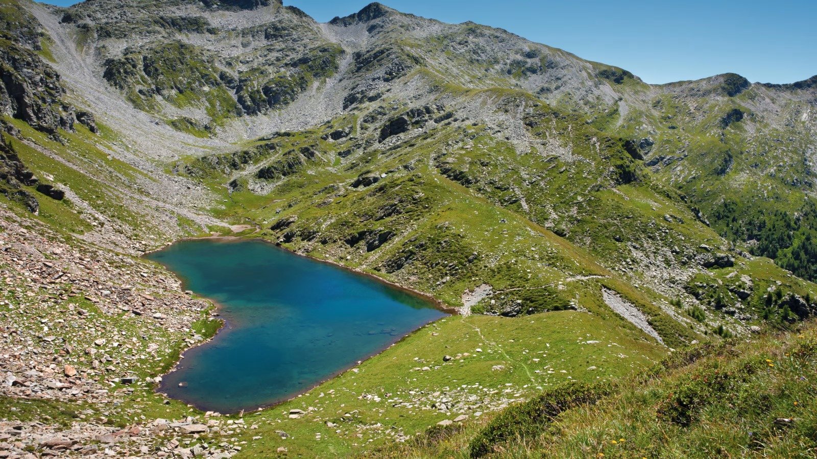 Este lago con forma de corazón está situado a 2.214 metros sobre el nivel del mar. Se encuentra enclavado en la cordillera que se extiende desde el puerto de San Bernardino, un paso alpino que conecta el cantón de los Grisones con el Tesino, entre los valles de Caranca y Mezzorchina. El lago de Calvaresc es famoso en toda Suiza por tener forma de corazón, si se mira desde la perspectiva adecuada.